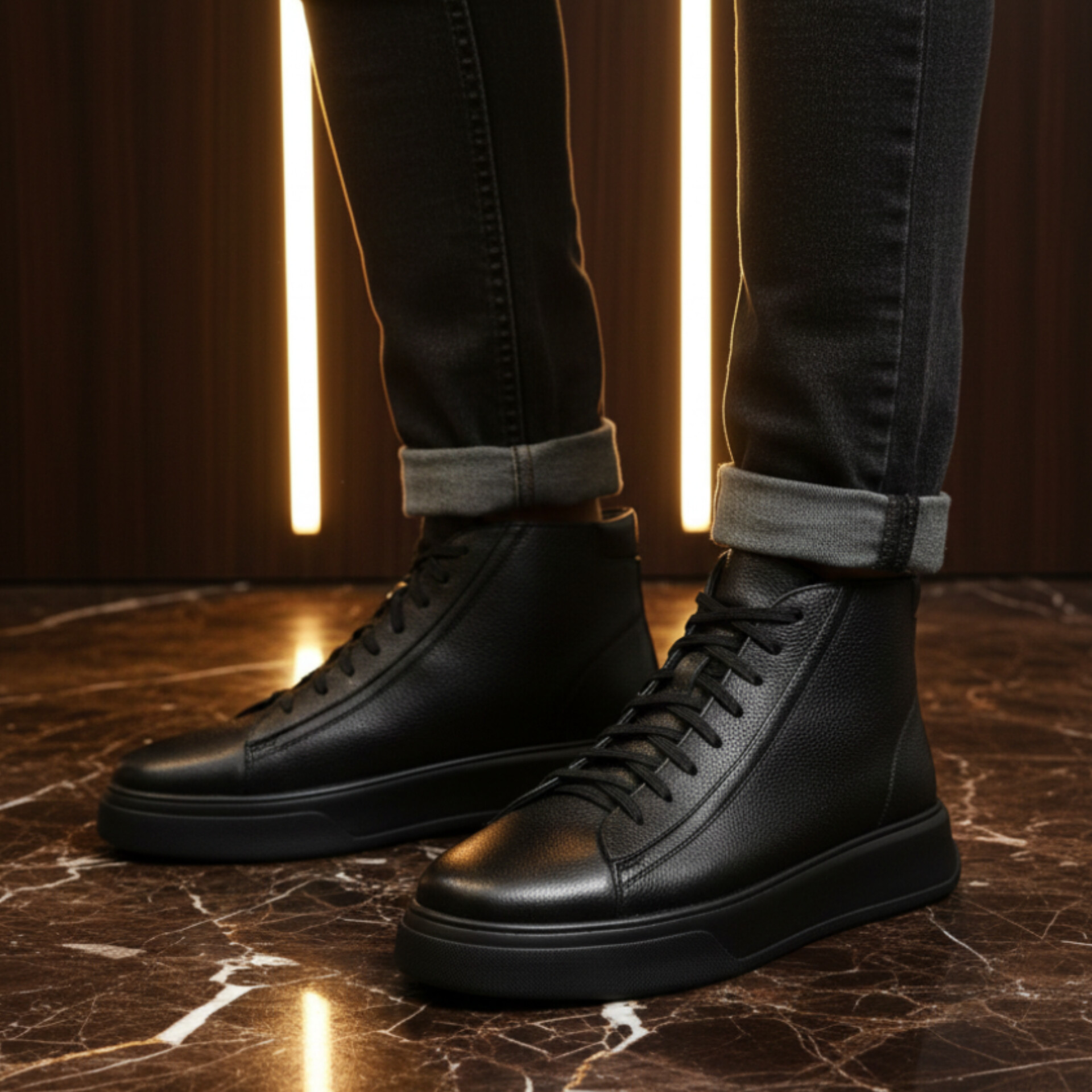این نیمبوت چرمی با رنگ خاص مشکی، قابل ست شدن با استایل رسمی و کژوال است و برای محیط کار، مهمانی و استفاده روزانه گزینهای ایدهآل محسوب میشود.